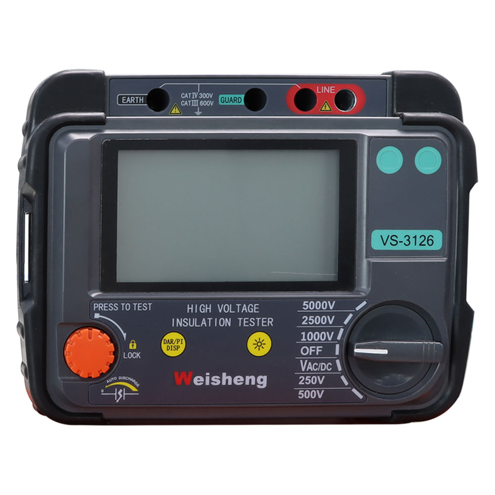 Weshine® VS-3126 yaiku batereiTester Insulasi Tegangan Tinggikanthi tampilan busur digital lan analog, dirancang kanggo uji resistensi insulasi voltase dhuwur ing pangopènan lan servis kabel, mesin pabrik puteran, trafo, switchgear lan aplikasi industri.